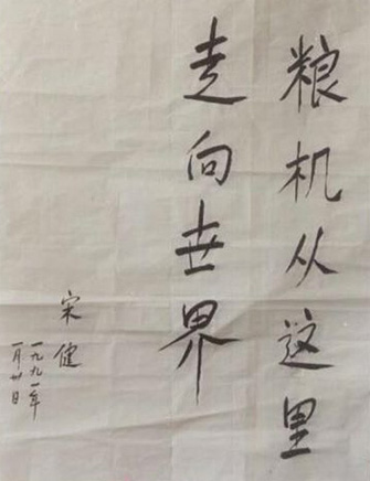 原國務委員、國家科委主任宋健參觀了當時的安陸糧機廠后題詞:糧機從這里走向世界